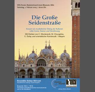 Genau darum geht es bei dem Projekt "Die Große Seidenstraße". Es schafft einen Dialog der Kulturen und bringt uns ins Gespräch, baut Brücken und nimmt Berührungsängste. Mit Musik von Monteverdi, Dufay und Merula bis hin zu byzantinischen Komponisten spannt dieses Konzertprogramm  einen musikalischen Bogen zwischen den Zentren des politischen Geschehens entlang der einst wichtigsten Handelsroute und verbindet Venedig mit Istanbul, Athen mit Bagdad  und Isfahan."
