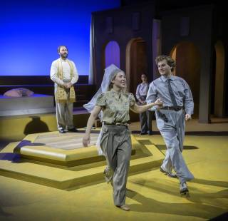 Eine außergewöhnliche Form wählte der Komponist Boris Blacher für seine Kammeroper „Romeo und Julia“, die er im Kriegsjahr 1943 schrieb: Ein Chor begleitet und kommentiert die Handlung und übernimmt selbst viele der Rollen, die in Shakespeares Drama die Entscheidungen von Romeo und Julia beeinflussen. So entsteht ein intensives, vielschichtiges Kammerspiel, ungewöhnlich und emotional packend für ein jugendliches Publikum.