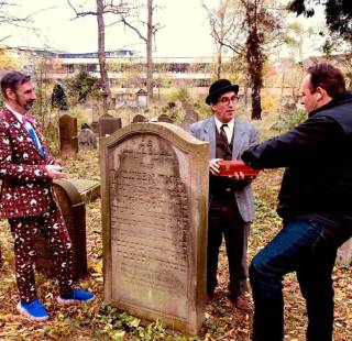 Die Macher nehmen uns zu Klezmer-Klängen vom Ensemble ART HOUSE 17 mit auf eine Entdeckungsreise und erzählen uns die Geschichte vom hochbegabten Jacques und seiner Familie an historischen Kölner Plätzen. Ankerpunkte des Spaziergangs sind die Stelle seines Geburtshauses am Großen Griechenmarkt, die Glockengasse, wo sich das Wohnhaus der Familie neben der ehemaligen Synagoge befand, der Große und der Kleine Offenbach-Platz vor der heutigen Oper, der Dom sowie der Jüdische Friedhof, auf dem Familienmitglieder der Offenbachs beigesetzt ist. Während die Gedenkorte in der Kölner Innenstadt nah beieinanderliegen, wird der Spaziergang zum Ausflug, wenn man sich zu Fuß zum Jüdischen Friedhof knapp drei Kilometer auf die andere Rheinseite nach Deutz aufmacht.